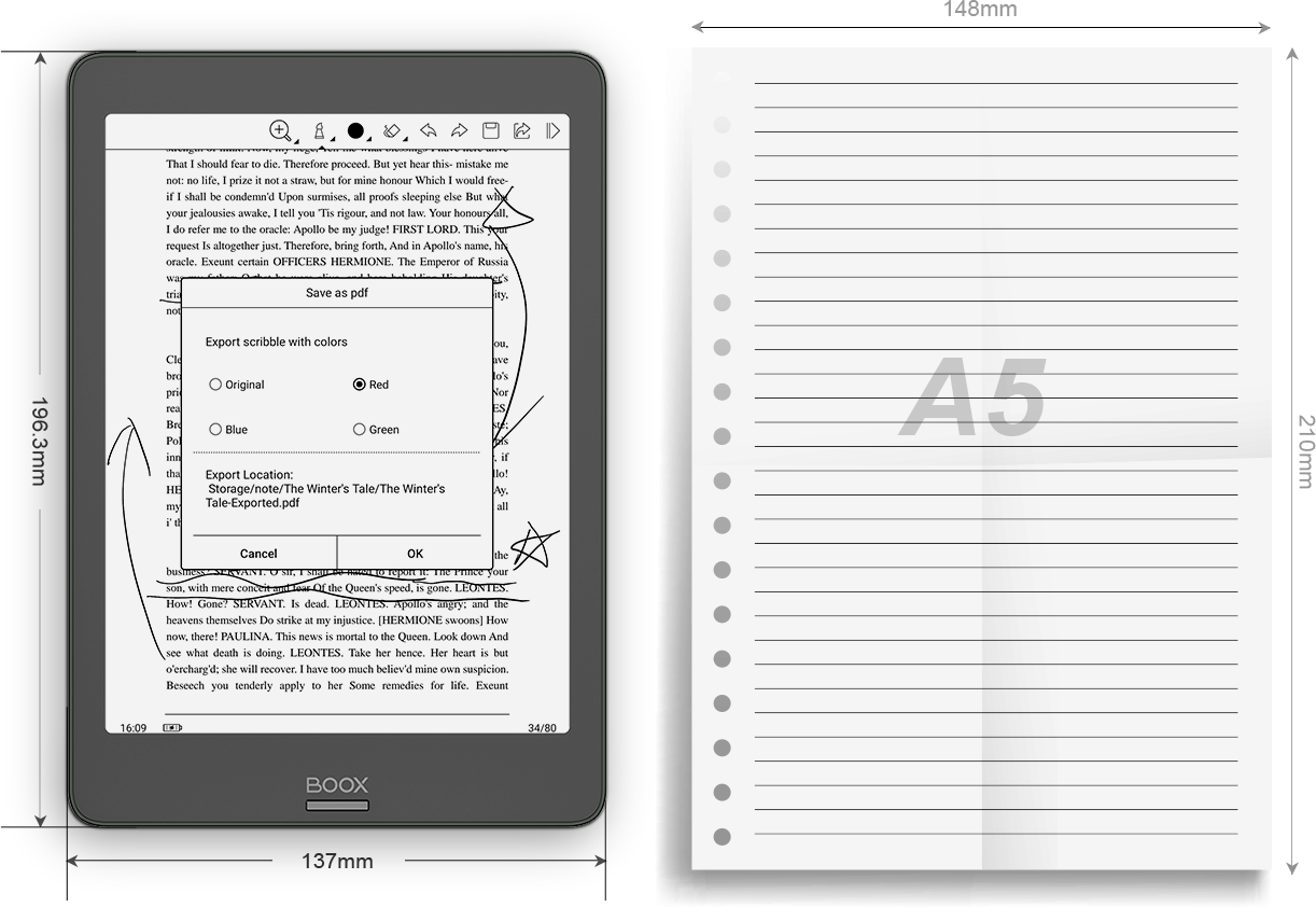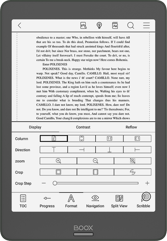 | Display | E Ink Carta Plus, 7,8" touch (inductive Wacom + capacitive), resolution 1872x1404, 300 ppi, 16 shades of grey, with the SNOW Field function |