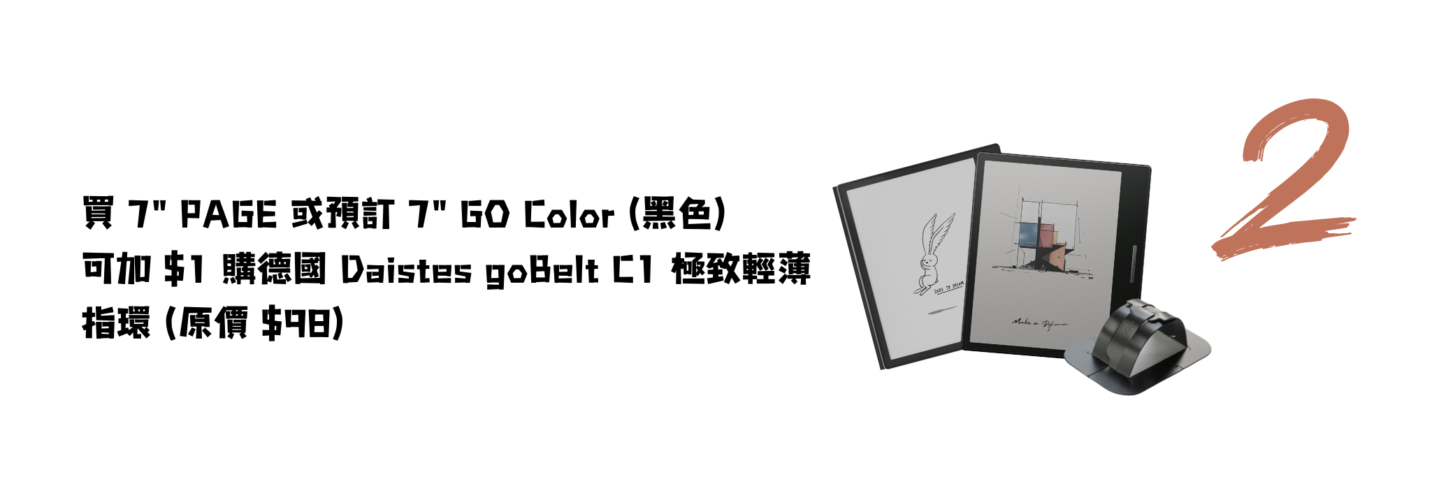於優惠期內經香港官網下單購買7” Page 或 下單預購全新7” Go Color 7 (黑色) , 即可以特惠價 $1 購買 德國製 Daistes goBelt C1極致輕薄指環 (原價 $98).