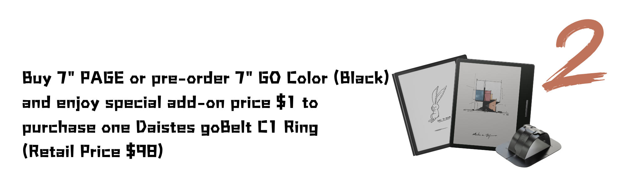 Place an order for 7” Page or pre-order the brand-new 7” Go Color 7 (black) through the Hong Kong official website, to be eligable to purchase the German-made Daistes goBelt C1 ultra-thin ring at a special price of $1 (Retail Price $98) .