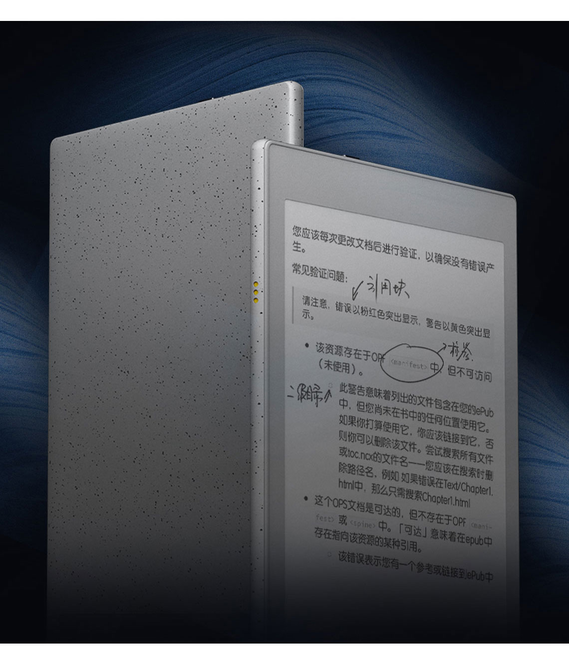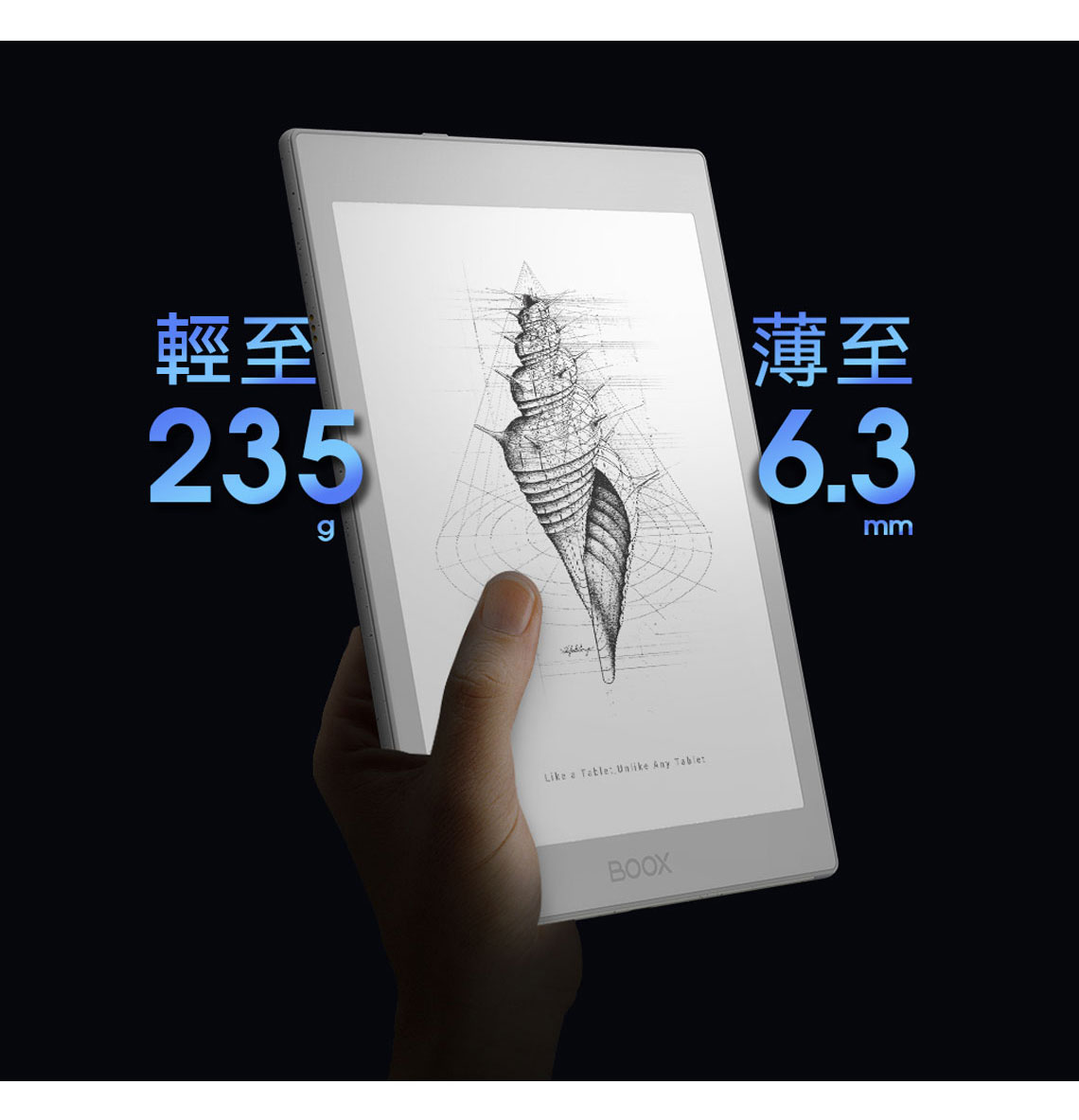 機身採用鎂鋁合金材質,相比 BOOX Nova 3 輕了 11 %,薄 18.2 %,長時間單手持握也不覺得累。