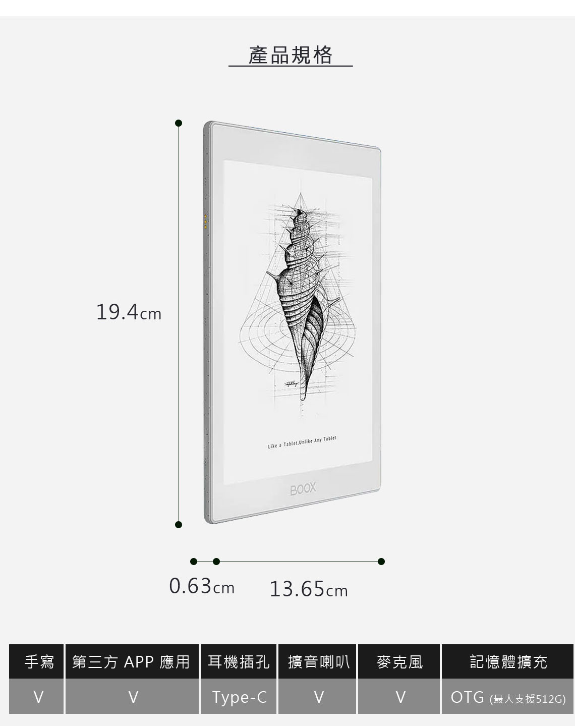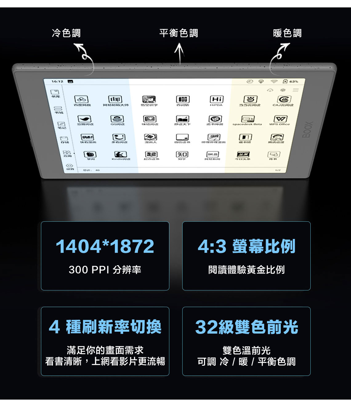 這配置依然出色,強大的處理器,搭配深度優化的 BOOX OS 系統,降低功能的同時操作更絲滑流暢,儲存空間理論上可存上萬冊閱讀文件檔案,滿足您對閱讀的需求。