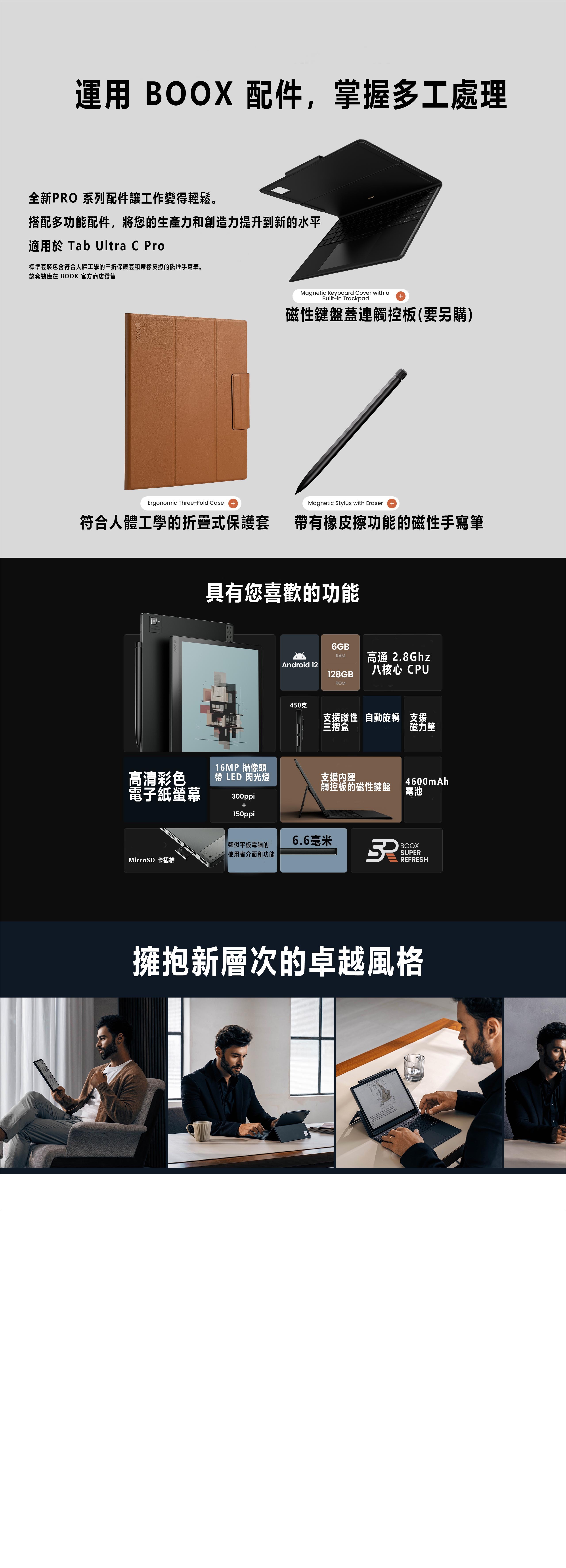 雙觸控 BOOX Pen2 Pro 磁吸式手寫筆觸控 + 電容式觸控 + CTM 前置燈